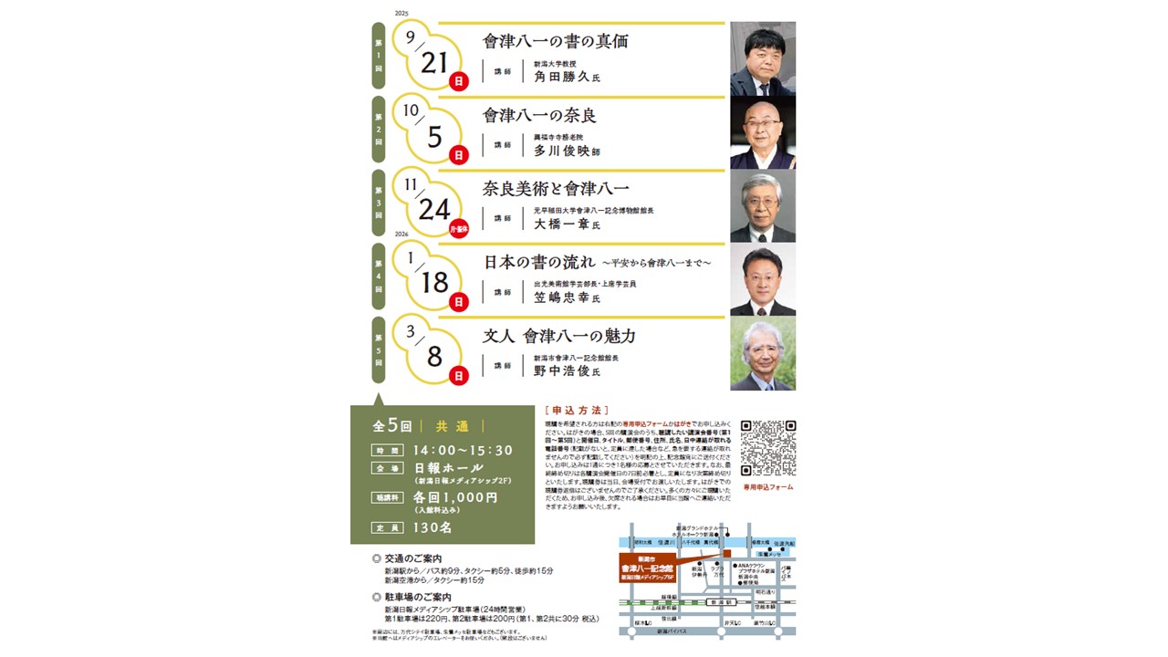 會津八一記念館が西船見町に開館してから今年で50周年。これを記念し、著名な研究者や八一とゆかりの深い奈良の高僧を講師に招き、新潟ではなかなか聞くことのできない知見に触れていただける講演会です。