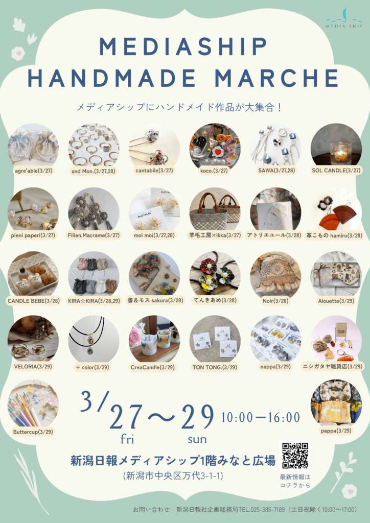 アクセサリーや布小物、植物雑貨など、春のはじまりを彩るハンドメイド作品が勢ぞろいします。