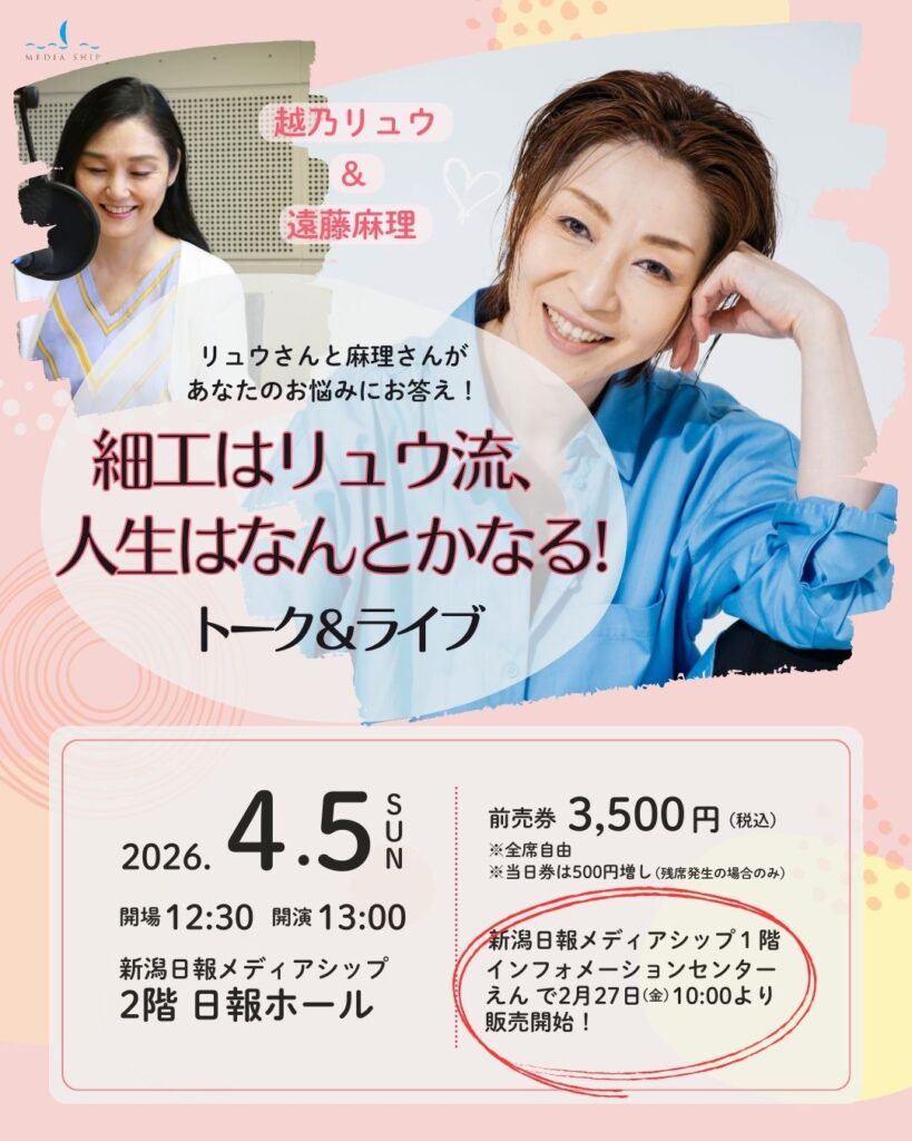 越乃リュウ&遠藤麻理「細工はリュウ流、人生はなんとかなる!」トーク&ライブ