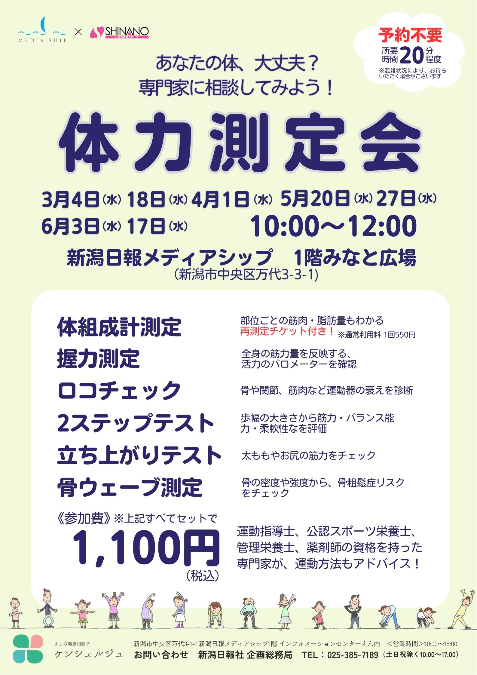 メディアシップ1階みなと広場で体力測定会を開催。